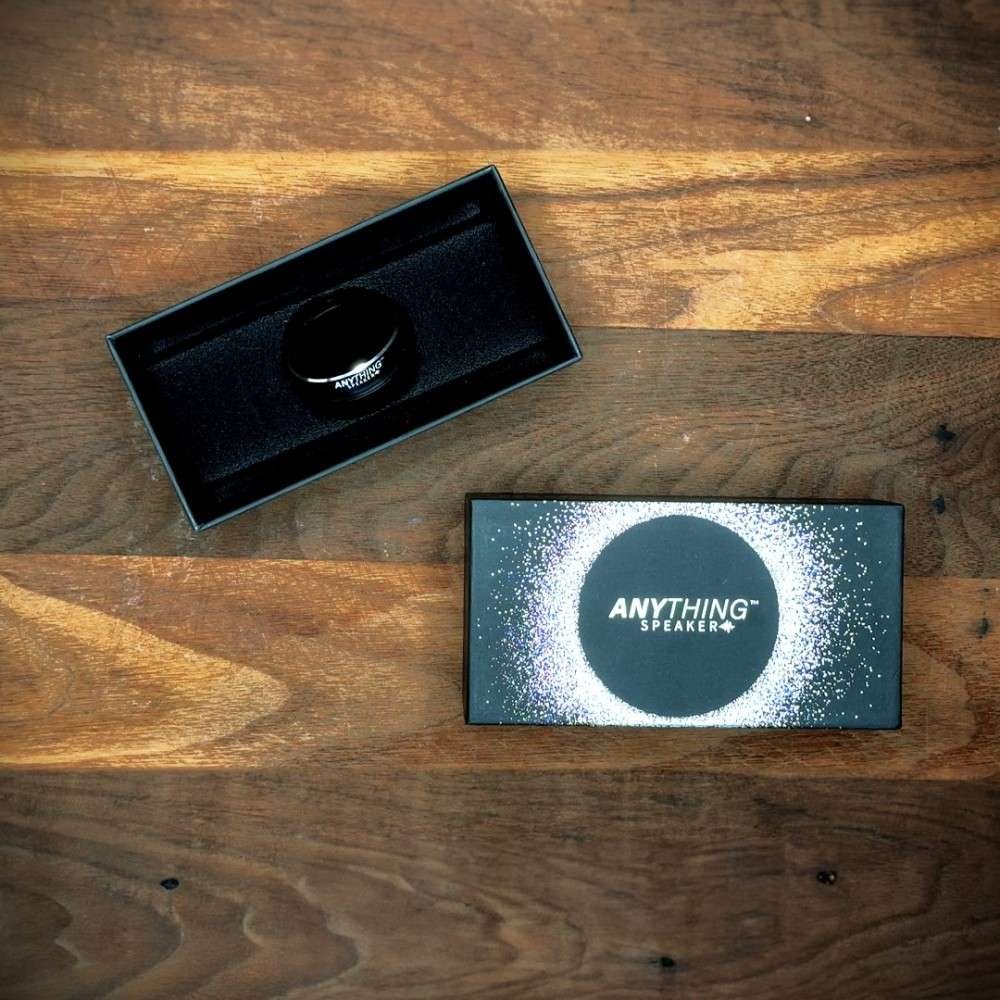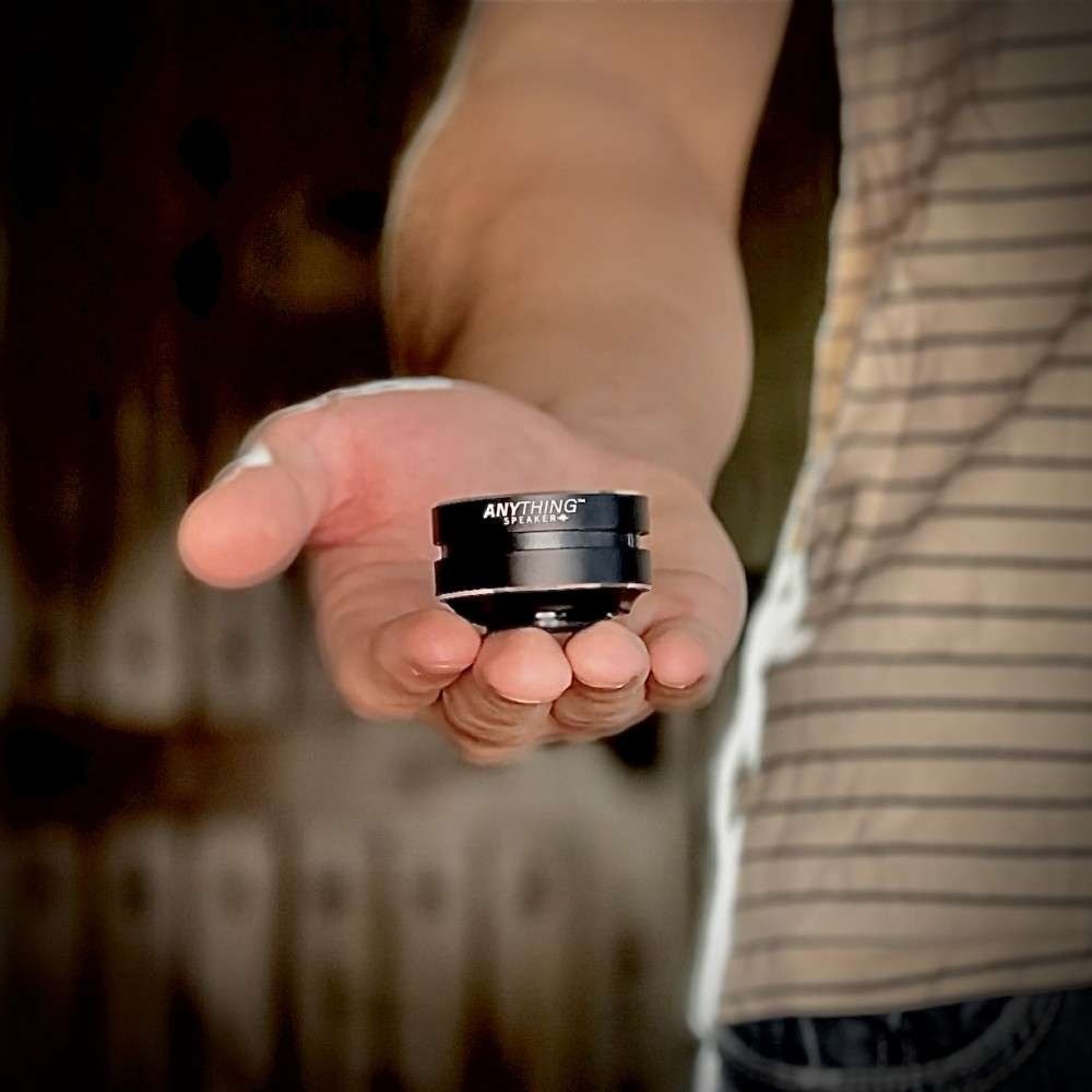 Unlike traditional Bluetooth speakers, the Anything Speaker uses vibration technology to amplify sound through the surface it touches. The result? Big, room-filling audio from a device small enough to fit in your pocket.