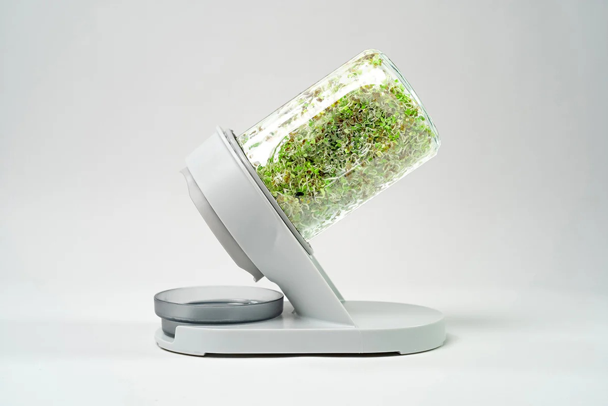 – Integrated stand securely and elegantly holds the sprouter at the perfect angle for optimal airflow and drainage.