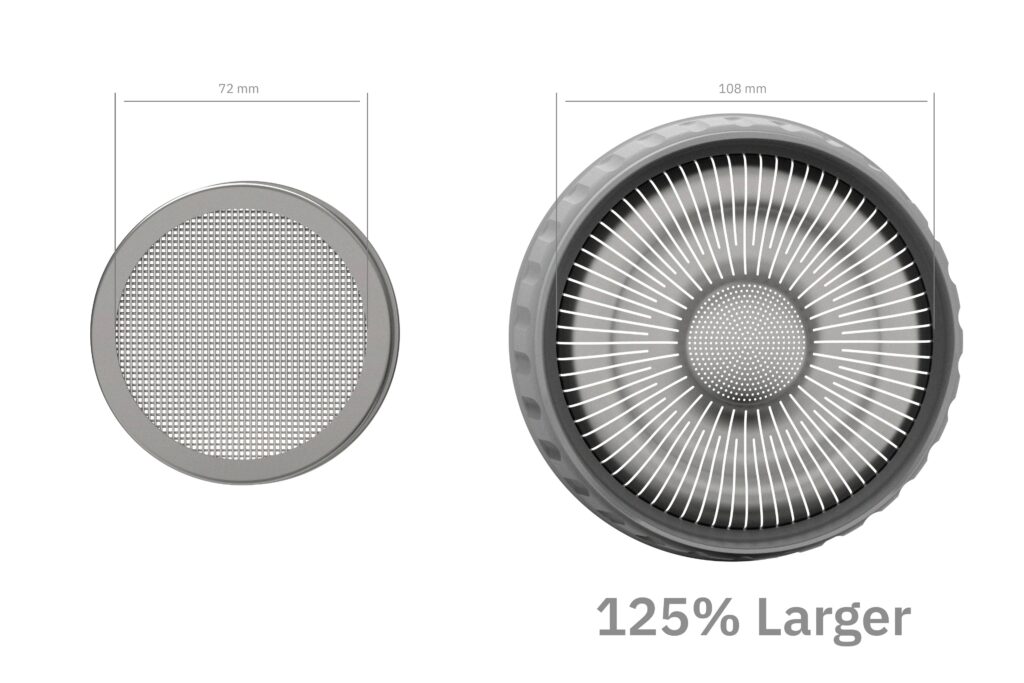 – Extra wide straight-walled vessel allows quick and complete drainage. Saves you time and improves sprout quality.